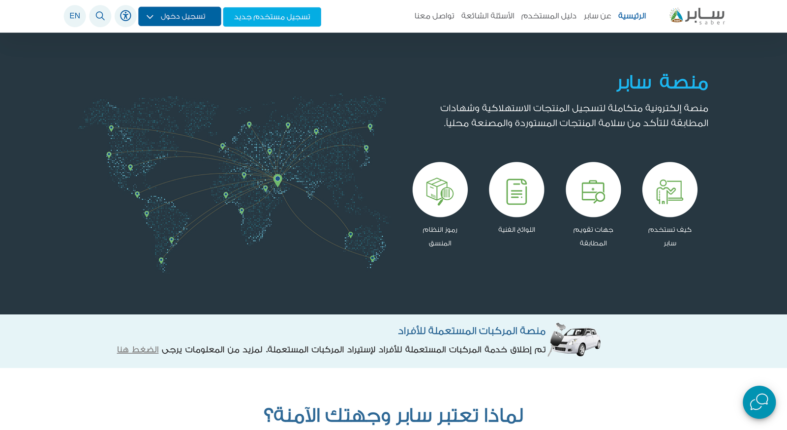يقوم المستخدم بالدخول على الصفحة الرئيسية لنظام سابر من خلال هذا الرابط: https://saber.sa/ بحيث ستظهر الشاشة التالية